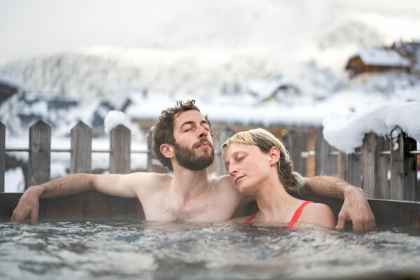 Une balnéo en plein air qui invite à la contemplation des sommets de Chartreuse.